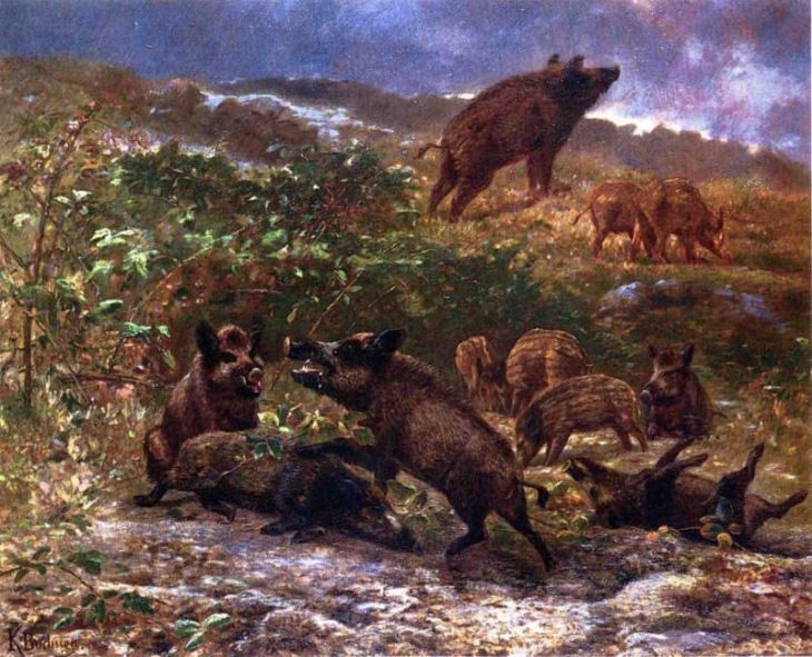 Commission your own breathtaking, hand painted reproduction of "A Family of Wild Boar". One of our team of talented artists will bring your painting to life on a professional grade, cotton canvas, using the finest quality oil paints. Once your artwork is completed and inspected, it will be shipped to you, unframed and in a protective tube. Your masterpiece will be with you in approximately 21 working days.