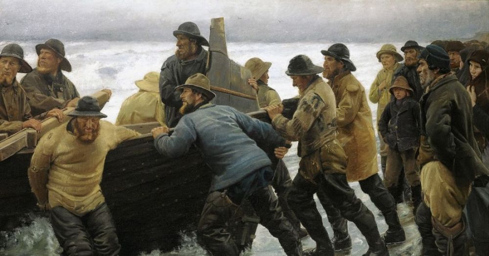 Fishermen launching a Rowing Boat