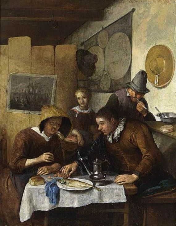 Commission your own breathtaking, hand painted reproduction of "Family Having Breakfast". One of our team of talented artists will bring your painting to life on a professional grade, cotton canvas, using the finest quality oil paints. Once your artwork is completed and inspected, it will be shipped to you, unframed and in a protective tube. Your masterpiece will be with you in approximately 21 working days.